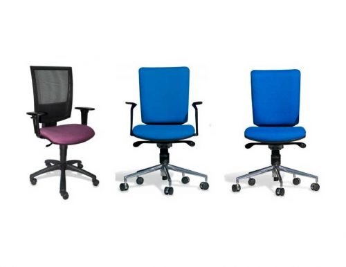 Silla ejecutiva. Disponible en 2 versiones: Tapizado completo en tela o ecocuero, Respaldo en malla y asiento tapizado.